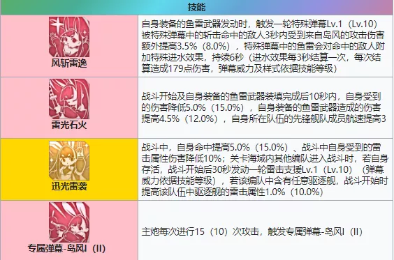 命中提升增加暴击率,跨编队支援鱼雷弹幕。