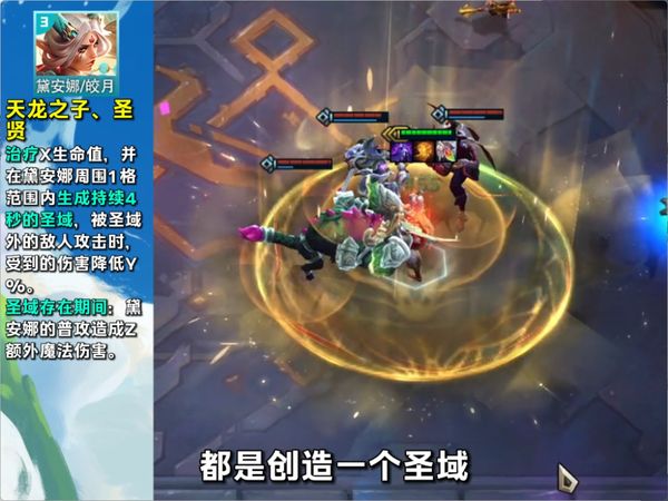 2、羁绊效果:作为“天龙之子”,黛安娜在战斗开始8秒后能够召唤巨龙对敌军造成真实伤害,并为友军提供攻速加成,这一羁绊在团战中尤为关键。同时,“圣贤”羁绊根据友军位置提供全能吸血或法强加成,进一步提升了团队的整体战斗力。