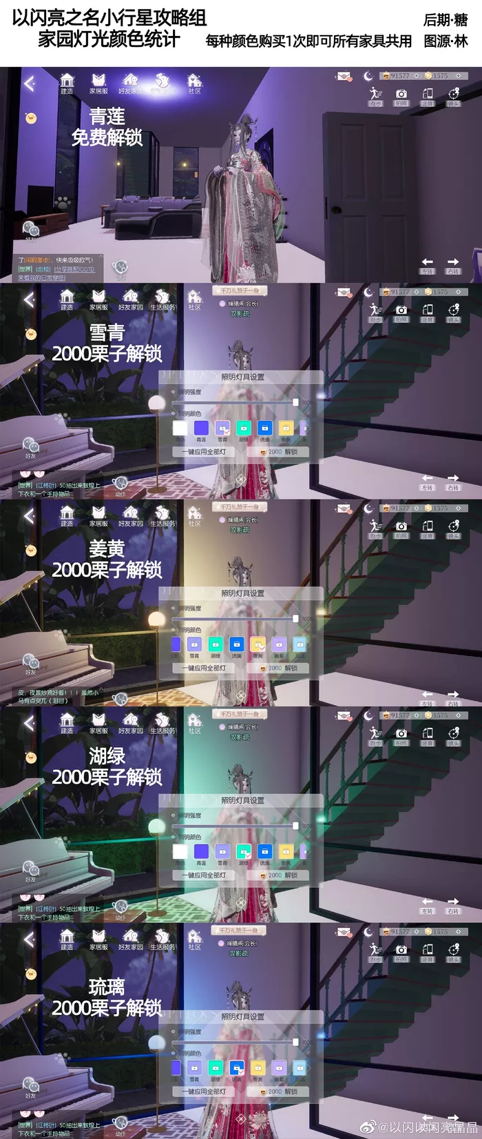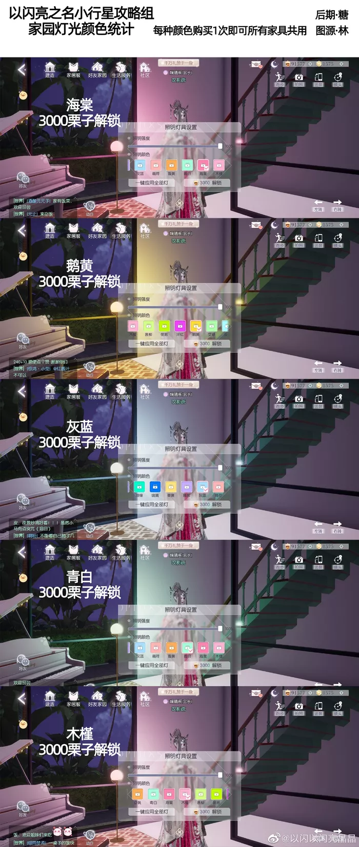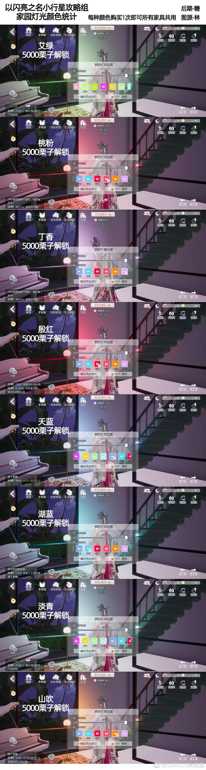 《以闪亮之名》家园灯光颜色统计攻略,详细攻略如下: