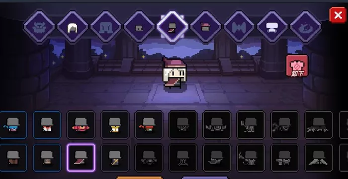 跟着玩家进去以后就是这个样子的,上面的图标从做到右分别是,套装,头发,装饰,表情,衣服,帽子,翅膀,肤色以及结尾的背景。