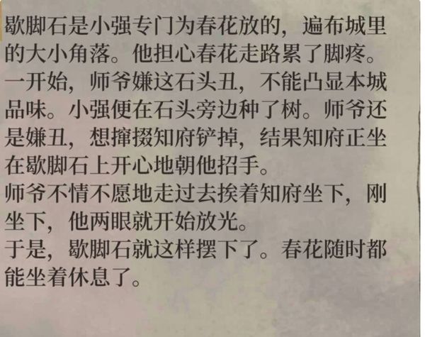 2、获取方法:歇脚石可以通过与严大人进行兑换获得。兑换时,需要40积分,可以使用3个望火楼、2个税课司或40个告示牌进行兑换。