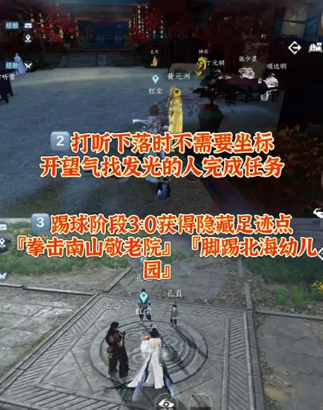 3、踢球阶段3:0获得隐藏足迹点『拳击南山敬老院』『脚踢北海幼儿园』
