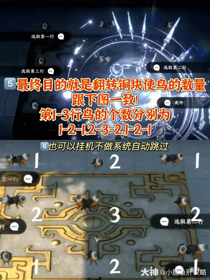 5、最终目的就是翻转铜块使鸟的数量跟下图一致!第1-3行鸟的个数分别为:1-2-1、2-3-2、1-2-1。