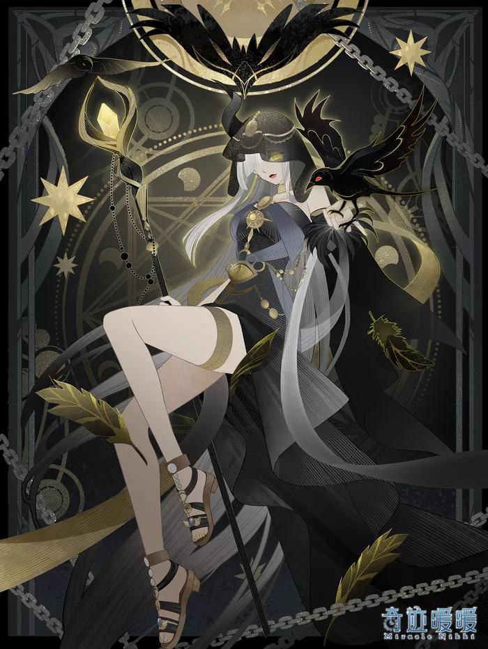 【幽羽跃金】含全新妆容“华彩乐段”,特效连衣裙“星夜昏光”、“幽羽迷诗”、“玄羽高歌”,特效摆件“未叙真言”,羽人角饰“敏锐情思”,精美头纱“唤名呼姓”。