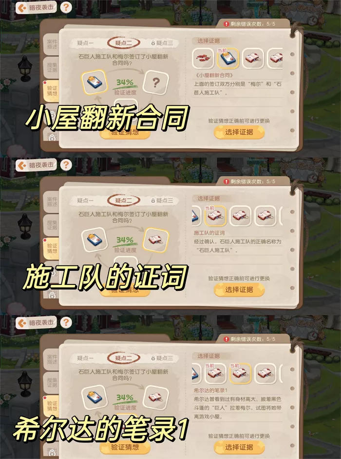 疑点2: 小屋翻新合同、施工队证词、希尔达笔录1。