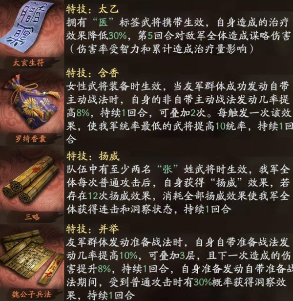4、魏公子兵法特技适合需要增强准备战法稳定性和伤害的队伍,如蜀国的关羽和庞统。