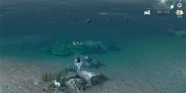 3、之后运用寒冰掌在水中结冰,一边结冰一边往前走。