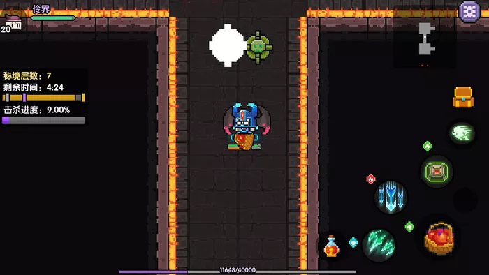 像这样在第一个房间与第二房间之间的通道口处放个地雷(建议放毒雷)这里要注意千万不要杀房间里的怪物不然就拿不了连杀。