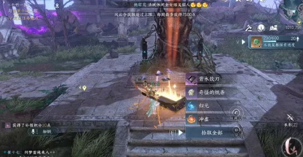 1、前往永夜星都(1052,766),利用回溯,点击采集。