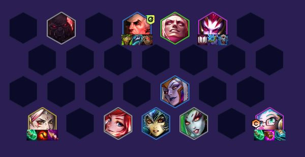 神器梦魇阵容前排灵活,有海克斯转时可硬玩,6级慢D追三星后上8找安蓓萨和俄洛伊。主坦可选择三星芮尔或二星俄洛伊,血量健康时可直接上9。