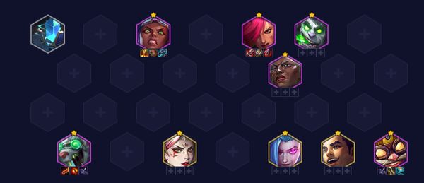 蓝发小队阵容适合有蓝发转和基础牌过渡时使用,金克丝二星后无敌。开局胡低费蓝发时考虑,中期开5蓝发,4-2拉8后找俄洛伊和佐伊开7蓝发,二星佐伊和俄洛伊后上9找二星金克丝。