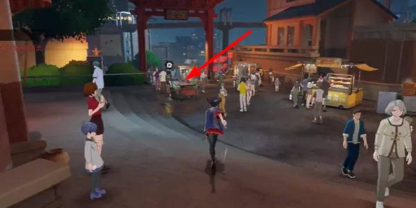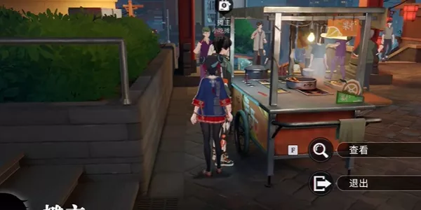 1、开启地图,传送到中浦城区,继而沿着小道走就可行看到路边的小吃摊。