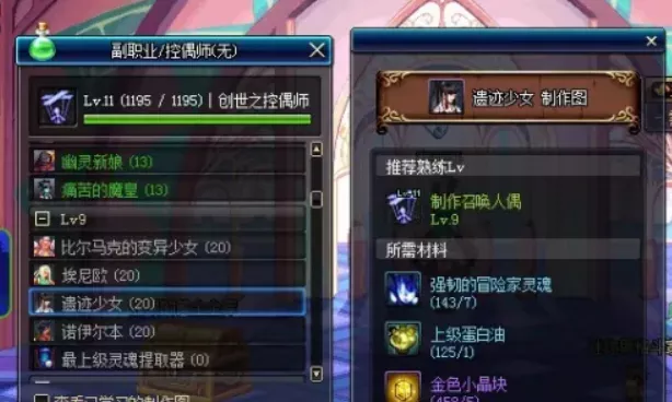 4、最后直接做90个五级的人偶,就会快速增强至7级(1375/1574),同时练成7级人偶师。