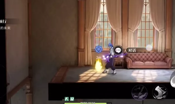4、进入后,点击对话,与灰进行对话。