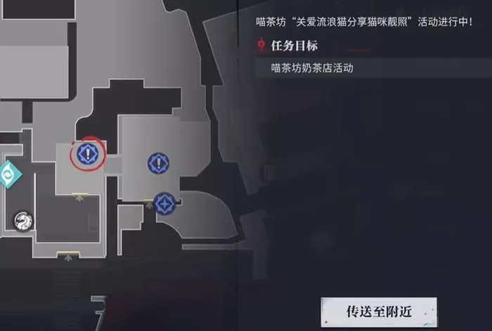 3、结束对话后,基于游戏提示,前往美食街进行猫咪摄影。
