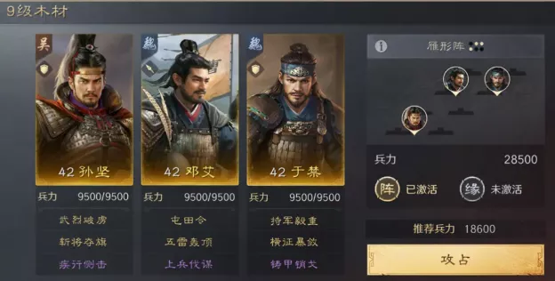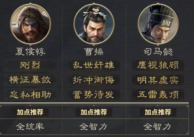 推荐阵容:夏侯惇 曹操 司马懿(箕形阵)