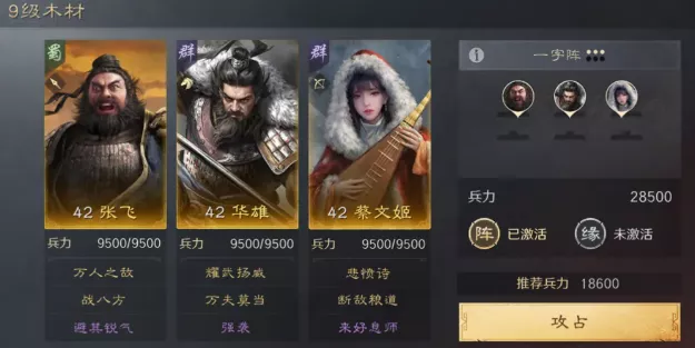 9级推荐土地守军建议选择“孙坚邓艾于禁”“张飞华雄蔡文姬”“吕蒙程昱甄洛”