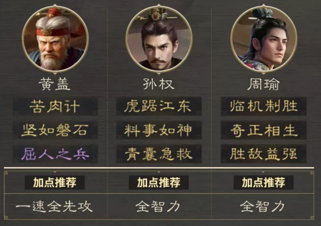 推荐阵容:黄盖 孙权 周瑜(箕形阵)