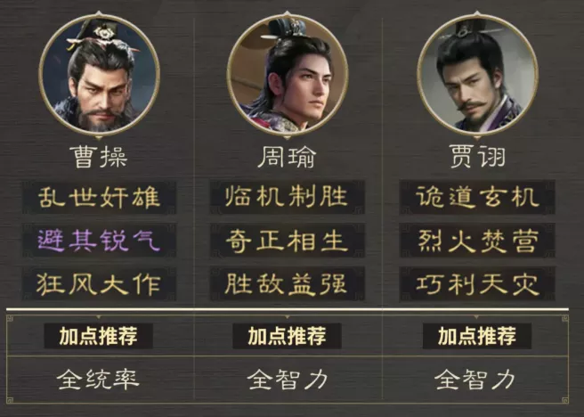 推荐阵容:曹操 周瑜 贾诩(箕形阵)