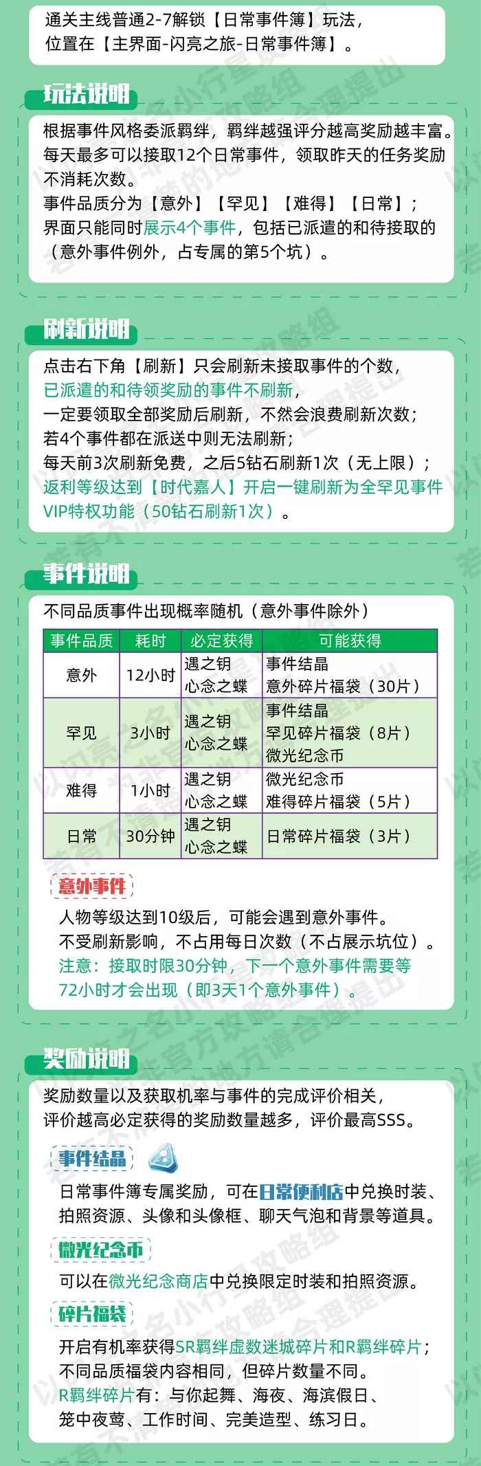 通关主线普通2-7解锁【日常事件簿】玩法,位置在【主界面-闪亮之旅-日常事件簿】。