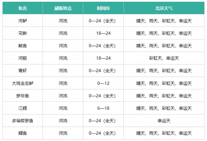 2、影响因素:钓鱼点的分布和可钓到的鱼类种类受到天气和时间的影响。