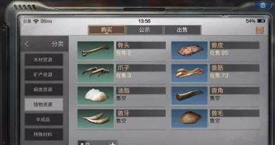 交易之城或101营地交易摊位怪物资源有售。