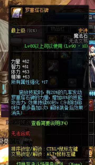 2、至于右侧装备栏,即右槽,它的主要用途是装配魔法石。这种装备具备独特而强大的增益效果,比如增强角色的魔法攻击力和提高对魔法的抗性。角色晋升至65级时,将面临一项魔法石装备的授权任务。任务完成时,右槽随后开放,允许玩家在此安装合适的魔法石,极大程度地提升角色的战斗效能。