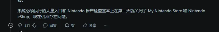 有网友反馈,由于系统需要进行多次Nintendo账户验证,日本任天堂商店在首日几乎瘫痪,目前问题仍在持续。